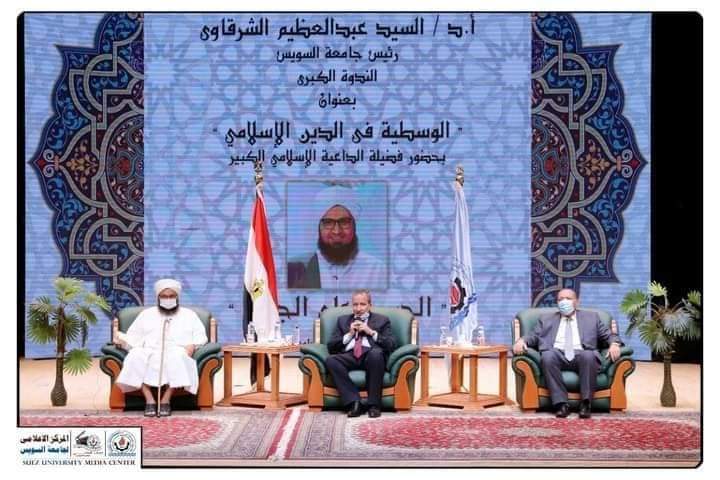 في إطار حرص الجامعة علي رفع الوعي الثقافي والديني لدي طلابها وتحت رعاية أ.د السيد عبدالعظيم الشرقاوي_ رئيس الجامعة نظمت جامعة السويس اليوم لقاءا مفتوحا لطلابها مع فضيلة الداعية "الحبيب علي الجفري" وبحضور أ.د جمال رجب أستاذ الفلسفة الإسلامية ونائب رئيس الجامعة السابق والسادة نواب رئيس الجامعة وعمداء الكليات و اعضاء هيئة التدريس والطلاب وذلك بقاعة المؤتمرات الكبري بالجامعة .