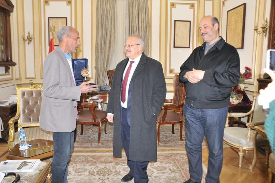 وأهدى الخشت الموظف المذكور، درع جامعة القاهرة تكريمًا له، إلى جانب المكافأة المالية، وحضر تكريم الموظف، الدكتور أحمد عبد العزيز مدير عام المستشفيات الجامعية.