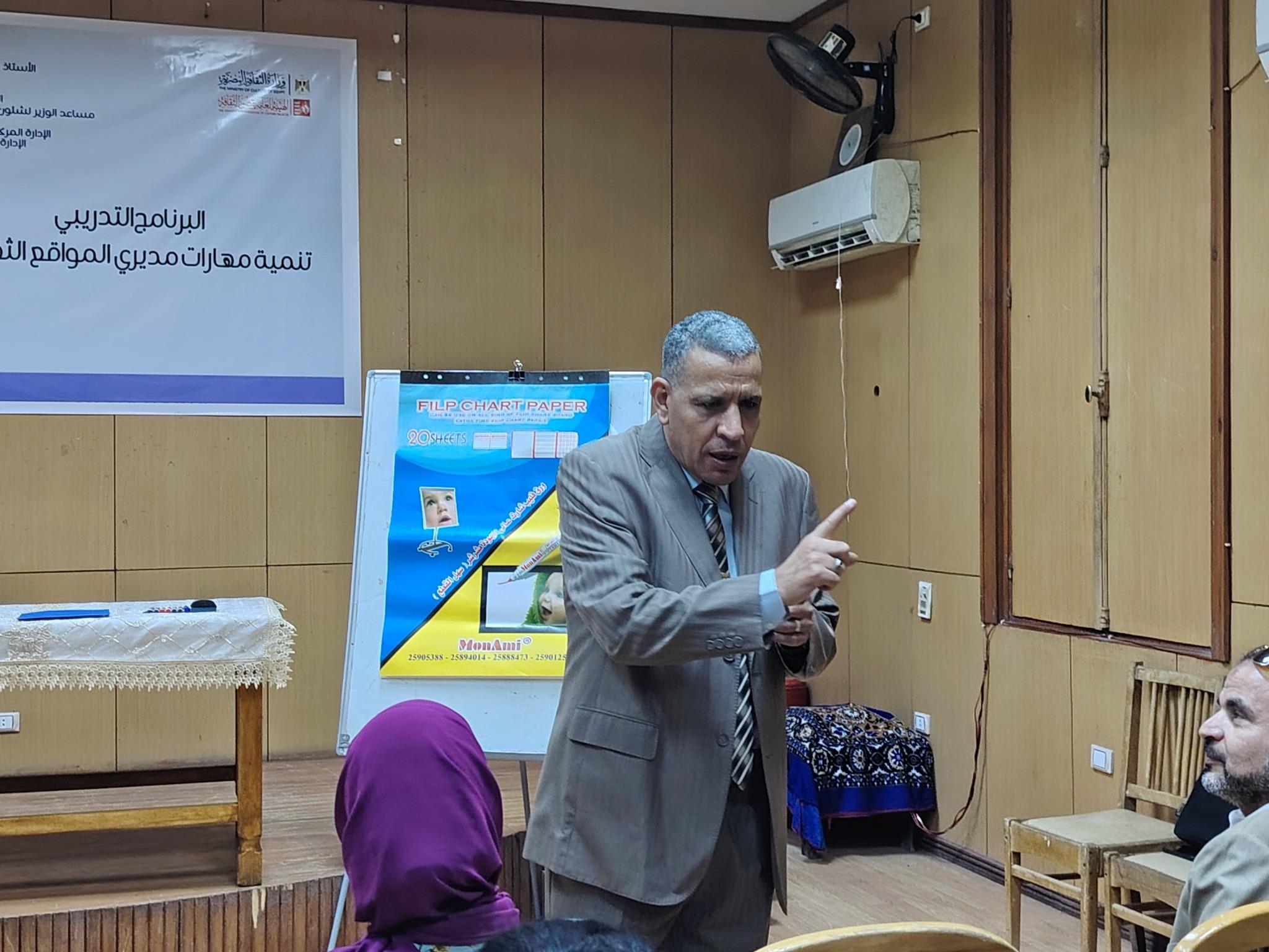 متناولاً ماهية الدورة المستندية للصرف من الموازنة بكافة الأبواب المتاحة والاستقطاعات المتنوعة لكافة العمليات والأبواب المعنية بالنشاط الثقافي المنفذ بالموقع ، وذلك ضمن فعاليات البرنامج التدريبي تنمية مهارات مديري المواقع الثقافية الذي تنفذه المركزية لإعداد القادة الثقافيين برئاسة أميمة مصطفى في أول أيام الحضور الفعلي في الأسبوع الثاني من البرنامج بمقر إعداد القادة بمصر الجديدة ، برعاية الهيئة العامة لقصور الثقافة برئاسة اللواء خالد اللبان