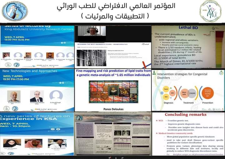 اختتمت أعمال المؤتمر العالمي الافتراضي للطب الوراثي (التطبيقات والمرئيات) ، الذي نظمته الجمعية السعودية للطب الوراثي بالتعاون مع مركز الاميرة الجوهرة البراهيم للتميز البحثي في الامراض الوراثية بجامعة الملك عبدالعزيز وسط حضور طبي كبير ساهم في مناقشة أوراق العمل الطبية التي تسهم في رفع مستوى الوعي الصحي الوراثي لدى المجتمع و تشجيع التعاون ، والإسهام في حركة التقدم العلمي والمهني في مجالات الطب الوراثي . حيث خرج المؤتمر بالعديد من التوصيات التي تواكب الجهود المبذولة والوقوف على ازدياد الأمراض الوراثية وتناميها في المملكة وذلك في ظل الجهود التي تبذلها حكومة خادم الحرمين الشريفين ـ حفظها الله ـ ودعمها لقطاع الوراثة والحد من أمراضها.