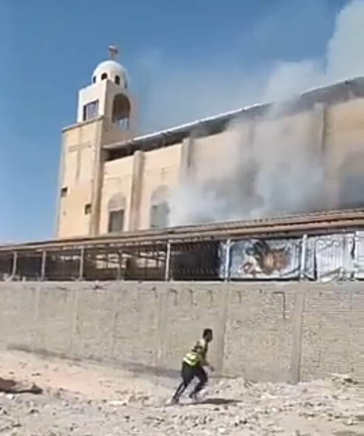 شب حريق هائل منذ قليل، في كنيسة الأنبا بيشوي في المنيا الجديدة وعلى الفور تم الدفع بـ 10 سيارات إطفاء للسيطرة على الحريق.