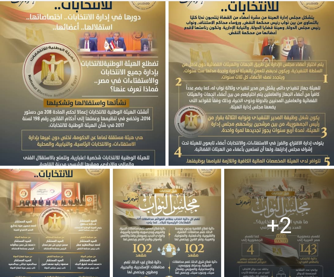 أصدرت وزارة الشؤون النيابية والقانونية والتواصل السياسي بيانًا، اليوم الخميس، قالت فيه إنها في إطار استمرار الدور الذي تقوم به في زيادة الوعي الانتخابي، وفي إطار تفعيل جانب التواصل السياسي، فإنها تنشر اليوم إنفوجرافًا لتعريف المواطنين بالهيئة الوطنية للانتخابات.. دورها في إدارة الانتخابات.. اختصاصاتها.. استقلالها.. أعضائها، وإنفوجرافًا ثان، يتعلق بكل المعلومات عن الدوائر الانتخابية.. العدد والتوزيع الجغرافي.