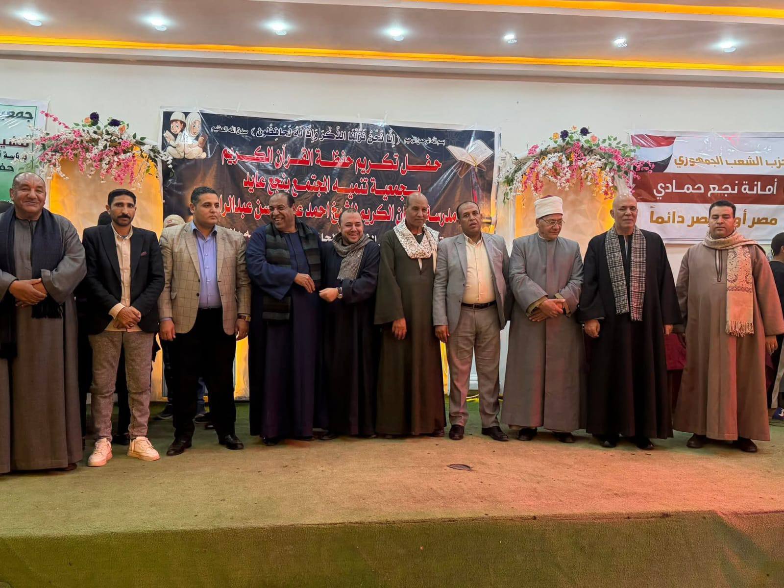 نظمت أمانة حزب الشعب الجمهوري بمركز نجع حمادي بمحافظة قنا، بالتعاون مع أمانة العمال بأمانة المحافظة، احتفالية كبرى لتكريم حفظة القرآن الكريم، وذلك بقاعة التطبيقين، وسط حضور كبير من القيادات التنفيذية والشعبية، وعدد من الشخصيات العامة وممثلي الأحزاب السياسية، إلى جانب أهالي المدينة.