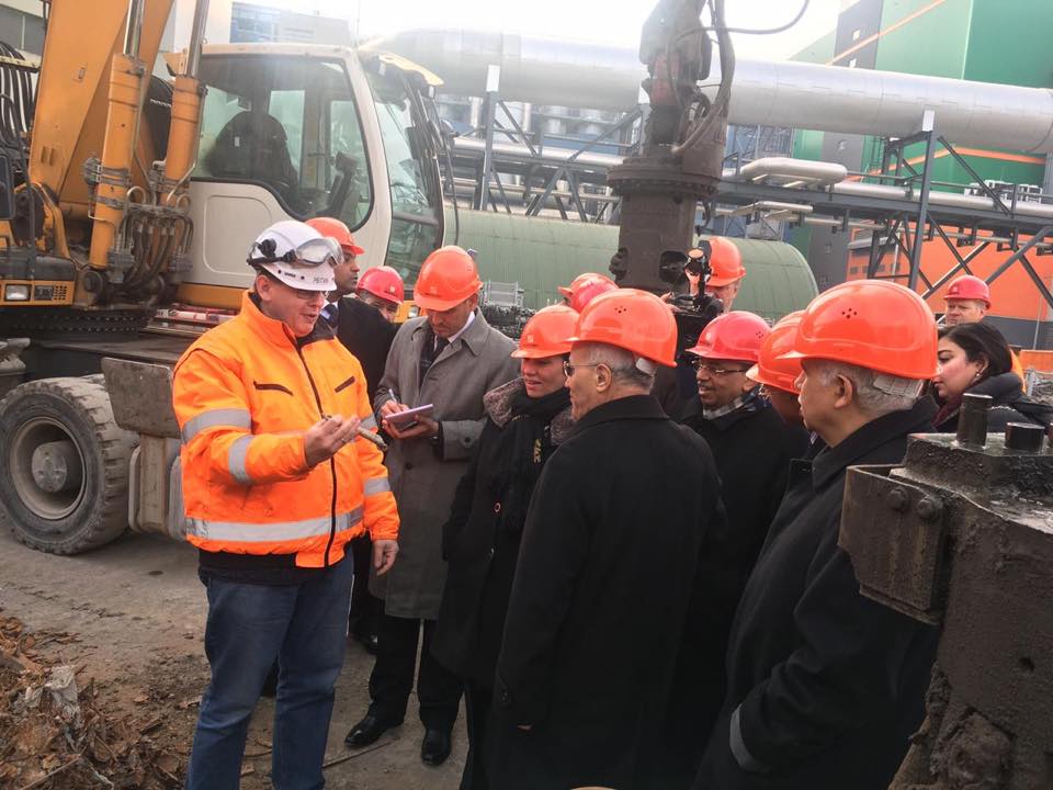 وعقب ذلك قام مسئولي باصطحاب الوفد الي جولة ميدانية داخل الشركة بوحدات المعالجة الحرارية والمنتجة للطاقة والبخار المتسخدم في عمليات التدفئة بالمدينة وكذا وحدات فصل المعادن لإعادة تدويرها وإنتاج بعض المنتجات لاستخدامها في البناء والاطلاع علي كافة وحدات خطوط انتاج الطاقة وتدوير المخلفات .