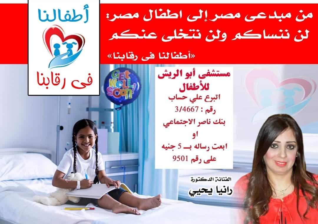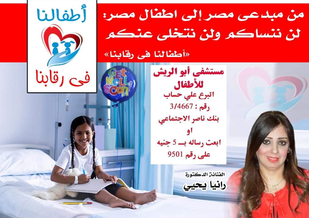 هذا واجب إنسانى ومجتمعى وكلى ثقة فى فنانى مصر ومبدعيها بالتفاعل مع هذه المبادرة ودعم مستشفى أبو الريش للأطفال وتقديم كافة أوجه المساعدة.
