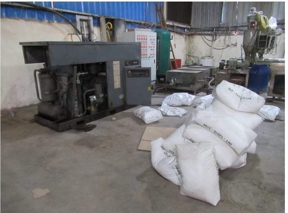 وعُثر بداخل المصنع على (ماكينة حقن كهربائية لإعداد شمعة فلتر المياه- ضاغط هواء كبير "كمبروسر"- 225 كيلو جرام مواد خام بلاستيك- عدد 4000 شمعة منتج نهائى) جميعها مخالفة للاشتراطات الفنية مجهولة المصدر، وتم اتخاذ الإجراءات القانونية.