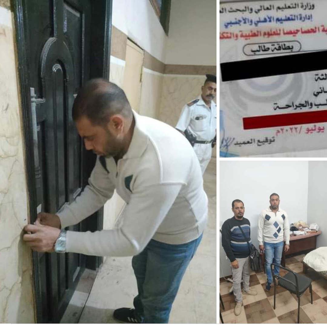 وقد تبين وجود شخص يدعى س.ع. يزاول مهنة الطب البشري بدون ترخيص مزاولة مهنة و يحمل رقم قومي وجواز سفر بدون مهنة وكارنيه طالب ويقوم بتوقيع الكشف الطبي على المرضى وكتابة وصفات علاجية