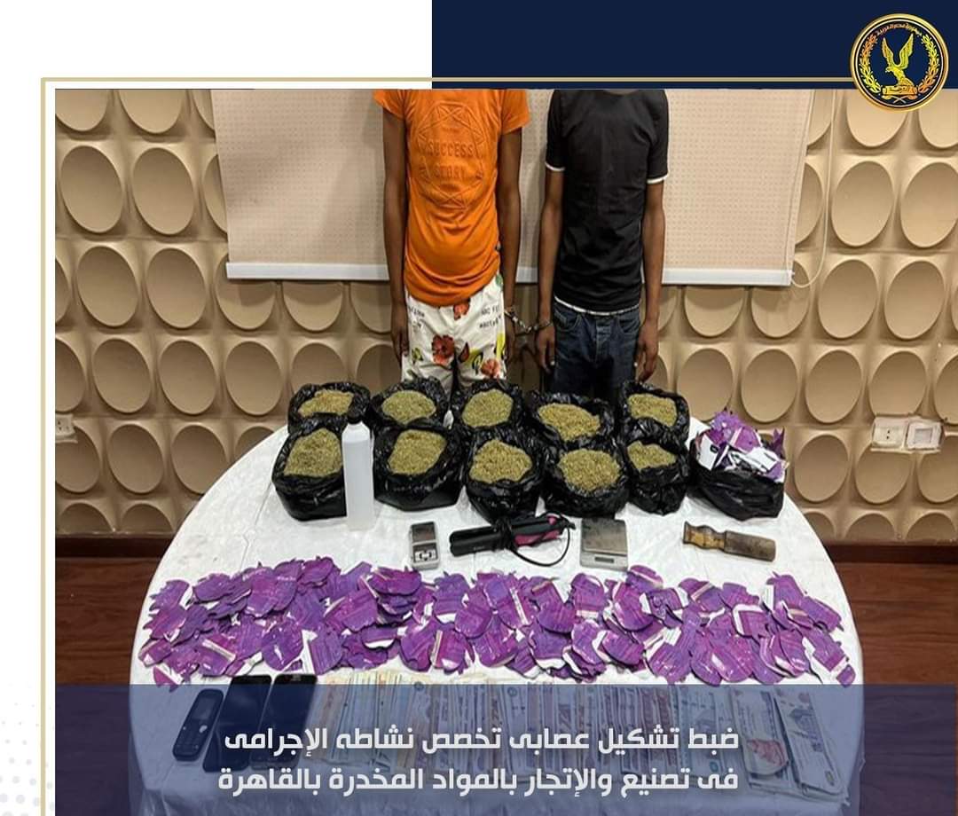 عقب تقنين الإجراءات تم إستهدافهما وأمكن ضبطهما.. وبحوزتهما (كمية من مخدر الفودو وزنت 7 كيلو جرام- كمية من مخدر الأستروكس - مبلغ مالى - عدد 3 هواتف محمولة - أدوات التصنيع).