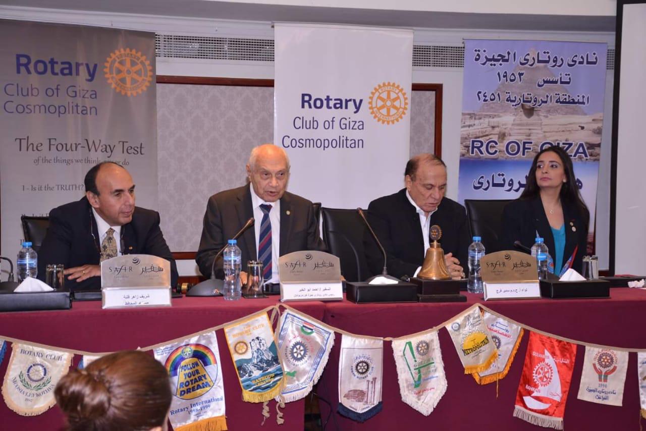 وكرم السفير أحمد أبو الخير رئيس نادي روتاري جيزة كوزموبوليتان، اللواء سمير فرج وتقليده شارة العضوية بالنادي، فضلًا عن تكريم منال خليل رئيس سابق نادي روتاري الفسطاط علي مجهوداتها تجاه النادي وتم تقليد شارة العضوية بالنادي للدكتور مهند العقباوي والمهندس أحمد شكري.