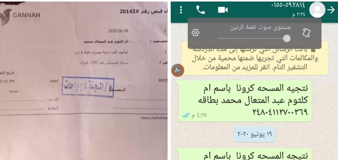 يقول الأستاذ خالد عبدالجابر حينما اصيبت أمي بجلطة بالمخ ذهبت بها الي مستشفى الجنة بشاوع الهرم محافظة الجيزة وطلبوا مني ثمانون الف جنيه تأمين تم دفع المبلغ وقررا الطبيب المعالج أن امي مصابة بكورونا وتعامل معها الأطباء أنها مصابة بكورونا وتم عمل مسحة لها بمعامل وزارة الصحة وقبل ان تظهر نتيجة المسحة كانت امي قد فارقت الحياة‘ إدارة المستشفى طالبتني بدفع مبلغ ستين الف جنيه اخري غير غير المبلغ الذي تم دفعه من قبل وهو ثمانون الف جنيه مع العلم إن الدكتورة هالة زايد وزيرة الصحة قد الزمت المستشفيات الخاصة ان قيمة الحجر الصحي لا يتجاوز