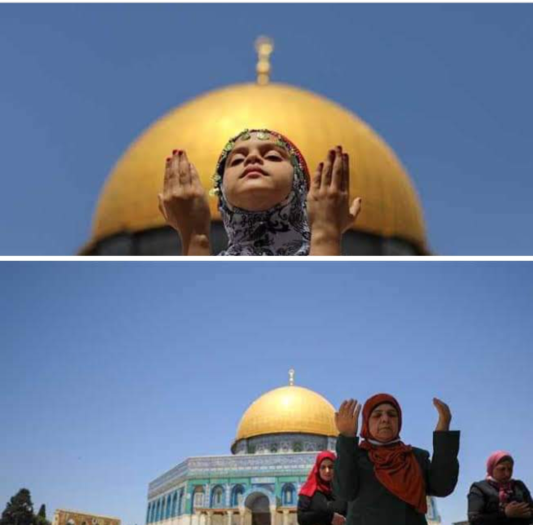 وتوافد العشرات من السيدات الفلسطينيات يوم الجمعة الأولى من شهر رمضان المبارك، على منطقة قبة الصخرة بالمسجد الأقصى لأداء صلاة أول جمعة في الشهر الفضيل.