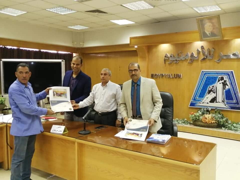 وبذلك تم الانتهاء من فعاليات البرنامج التدريبي (تطوير وتبسيط إجراءات العمل)التي أقيمت بقاعة الدكتور يوسف اسماعيل بنادي الألومنيوم الرياضي بنجع حمادي شمال قنا لمجموعة من السادة العاملين بالشركة وذلك تحت قيادة رئيس مجلس الإدارة والعضو المنتدب المهندس. محمود سالم والمحاسب. خالد فراج محمود رئيس قطاعات الشئون الادارية والخدمات والمحاسب. محمد ثروت صادق مدير عام تنمية الموارد البشرية وفريق العمل بإدارة التدريب بقيادة الأستاذ الدكتور. أيمن مرجان أستاذ التنمية البشرية