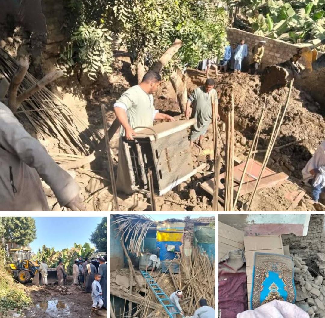 وبالمعاينة الأولية، تبين أن المنزل ملك المواطن عبد الوهاب عبد النعيم رمضان، وهو مسن يقيم بمفرده بالدور الأرضي، فيما يقطن الدور الثاني نجله ربيع عبد الوهاب (58 عامًا) وأسرته المكونة من أربعة أفراد، بالإضافة إلى نجله الآخر البكري عبد الوهاب، وقد أدى الانهيار إلى تهدم كامل محتويات المنزل ودفنها أسفل الأنقاض.