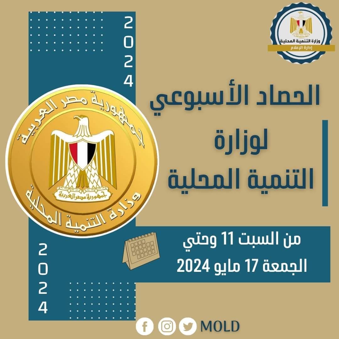 أصدر المركز الإعلامي التابع لوزارة التنمية المحلية، "الانفوجراف الأسبوعي" في نسخته الـ ٨٦ حول حصاد أهم الأنشطة والفعاليات التي قام بها اللواء هشام آمنة وزير التنمية المحلية، خلال الأسبوع الماضي في الفترة من ١١ حتى ١٧ مايو الجاري 2024، حيث نستعرض أبرزها في التقرير التالي الذي نشرته الصفحة الرسمية لوزارة التنمية المحلية على موقع التواصل الاجتماعي "فيس بوك" من خلال انفوجراف يرصد أبرز تلك الأنشطة التي جاءت كالتالي: