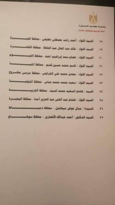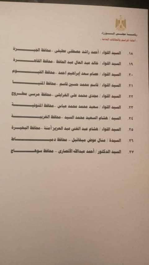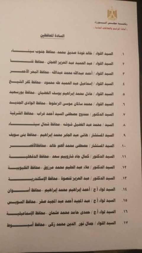 إعتمدت المؤسسة الرئاسية منذ قليل الأسماء النهائية للمحافظين الجدد و نوابهم ، و فيما يلي قائمة بالأسماء المعينة صباح اليوم :