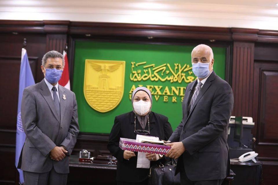 تنفيذا للمبادرة الإنسانية للسيد الرئيس عبد الفتاح السيسى، بتكريم أسر الأطباء والتمريض، أستقبل الدكتور عصام الكردى، رئيس جامعة الإسكندرية، أمس الأربعاء ٢٤ يونيو ٢٠٢٠، حرم المرحوم الدكتور عمرو عبيد الأستاذ السابق بكلية الطب، الذى توفى الشهر الماضي إثر إصابته بفيروس كورونا المستجد، وذلك بحضور الدكتور وائل عبد السلام عميد كلية الطب، حيث قدم لها نيابة عن السيد الرئيس عبد الفتاح السيسي، شهادة تقدير وهدية معنوية رمزية، تعبيراً من سيادته عن خالص العرفان والتقدير والإمتنان لجهود كافة الأطقم الطبية في مواجهة فيروس كورونا المستجد، وذلك بعد تعافى سيادتها من إصابتها بفيروس كورونا.