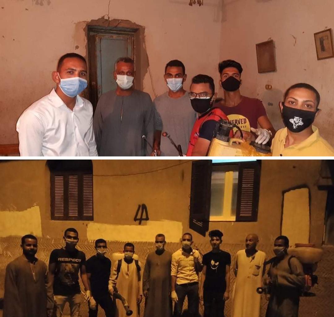 حيث قام مجموعه من الشباب بمنطقة الصعايدة بدشنا شمال قنا بتعقيم وتطهير بعض شوارع دشنا وجارى التجهيز لتعقيم بقية الشوارع بدشنا وسبق أن قام عدة مجموعات من الشباب بتطهير وتعقيم المركز ولكن استمرار هؤلاء الشباب حتي الآن يدل علي زرع الوطنية والإخلاص لأنهم يريدون بلدهم في احسن صحة وأحسن حال وان تمر هذه الأيام بخير وان يرفع عن مصرنا الغالية الوباء فيروس كورونا المستجد الذي يجب علي جميع من يستطيع ان يقف مع الدوله ويقوم بالدعم بكل مايستطيع