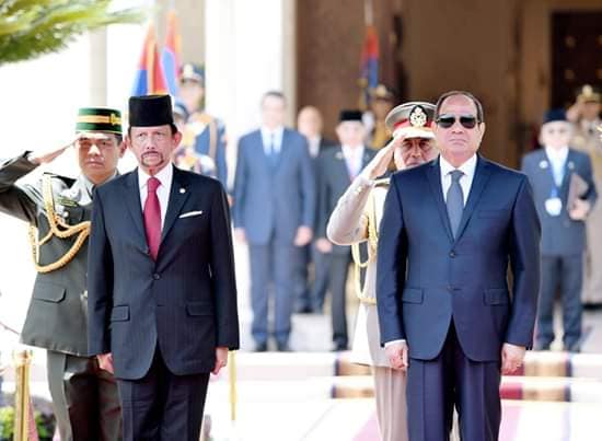 استقبل الرئيس عبد الفتاح السيسي اليوم بقصر الاتحادية السلطان حسن بلقيه، سلطان بروناي، حيث تم إجراء مراسم الاستقبال الرسمي وعزف السلامين الوطنيين واستعراض حرس الشرف.