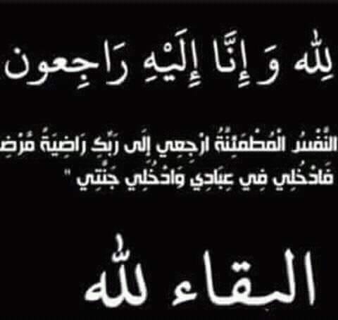 بسم الله الرحمن الرحيم، (وَبَشِّرِ الصَّابِرِينَ الَّذِينَ إِذَا أَصَابَتْهُم مُّصِيبَةٌ قَالُواْ إِنَّا لِلّهِ وَإِنَّا إِلَيْهِ رَاجِعونَ) صدق الله العظيم.