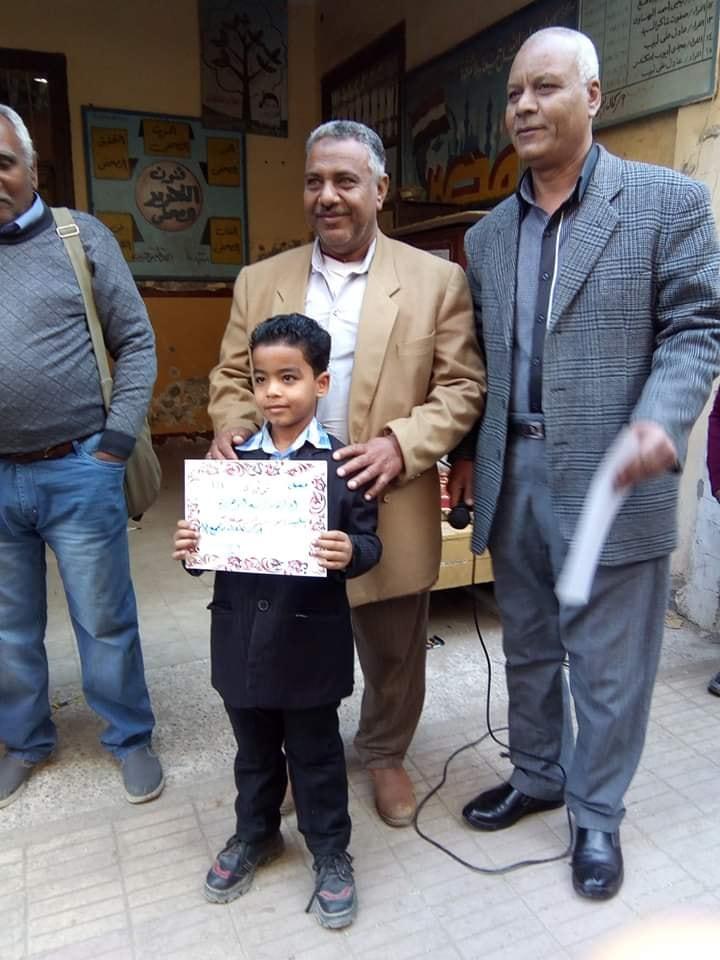 اليوم تم تكريم الطالب /يوسف عمر صلاح لتفوقه بالمركز الأول بجميع المواد بالفصل الدراسي الأول حفيد مدير مدرسة أبو هريرة الإبتدائية الأستاذ /عبدالناصر فهي البنا