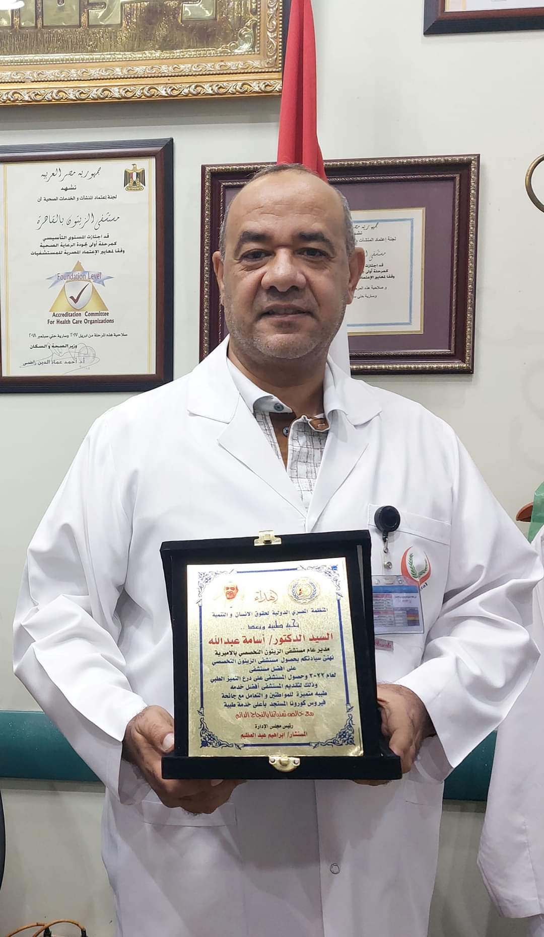 منح درع التميز الطبي لمستشفى الزيتون التخصصي بالاميرية دكتور اسامه عبدالله مدير عام مستشفى الزيتون التخصصي