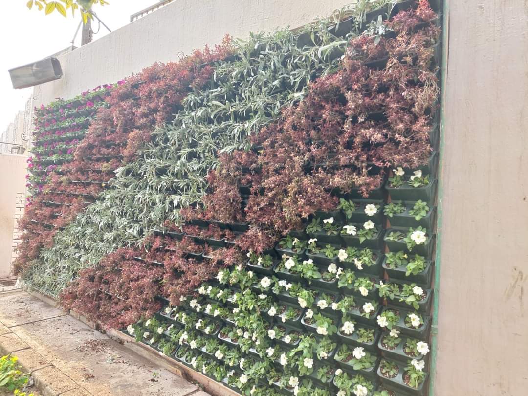 حيث تم تجهيز الحوائط الاسمنتية باحواض بلاستيكيه بمعرفه الورش الإنتاجية باقسام النجاره والانشاءات تحت إشراف مهندس اسعد محمد مدير عام الورش للبدء في الزراعه بمعرفه المركزيه للتجميل تحت إشراف مهندس رضا عمر مساعد رئيس المركزيه ومدير المشروعات التجميلية والمهندس محمد سعيد مدير محور العروبه لزراعه الحوائط بالجزيره الوسطي لصلاح سالم في نقله نوعيه جديده لمفهوم زراعه المحاور والجزر والحوائط واتباع أفضل الوسائل الحديثه في الري بالتنقيط في ري الزورعات والشتلات