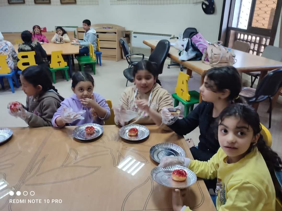 كما أقامت المكتبة فعالية ترفيهية بعنوان "مهرجان الدوناتس" حيث استمتع الاطفال بطريقة عمل الدوناتس ضمن ورش التدبير المنزلى، بالاضافة الى ورشة عمل الميداليات بخيط المكرمية.