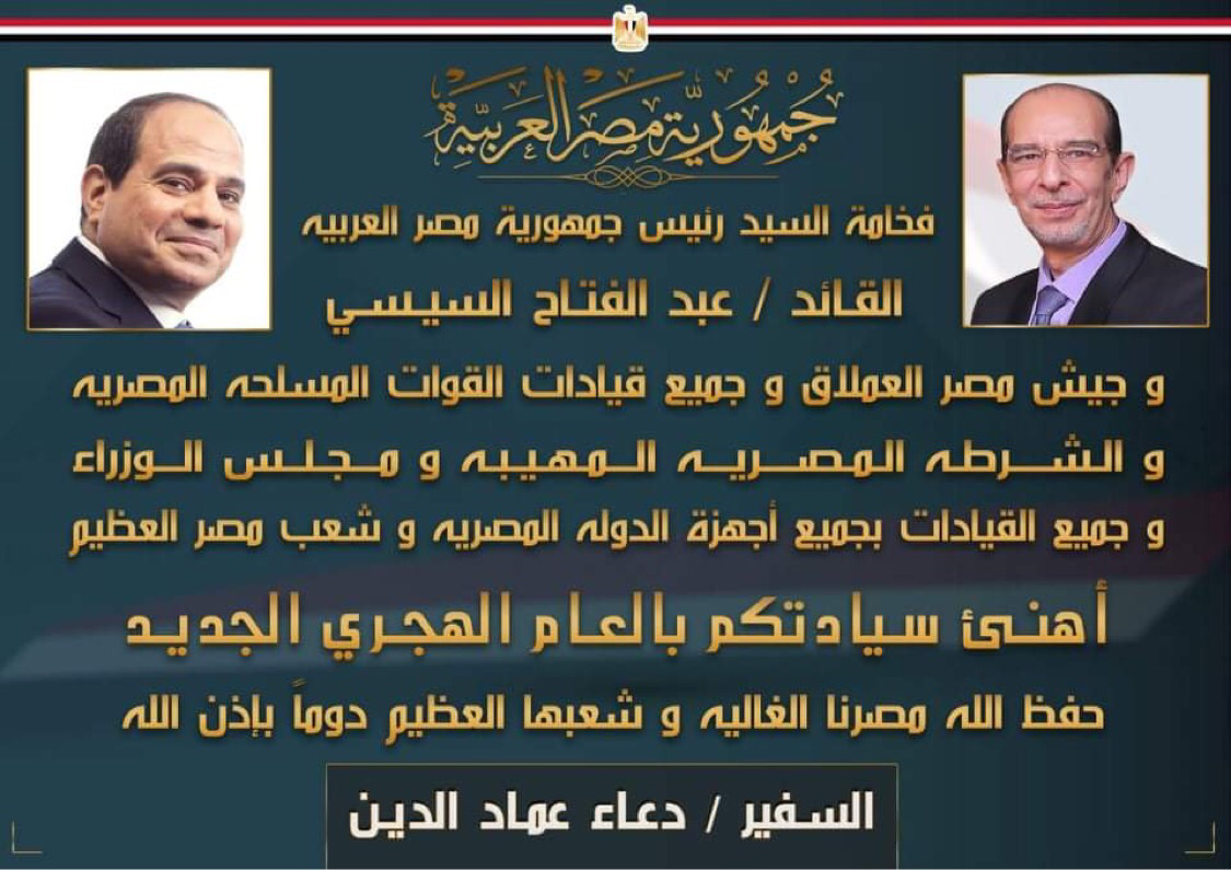 تهنئة الي كل شعب مصر العظيم بمناسبة حلول العام الهجري الجديد المناسبة العطرة المليئة بمعان عامرة وسامية في قلوبنا، والتي تذكرنا برسالة النبي محمد العظيمة في صدق النية والعزم والإخلاص في البناء والعطاء والرقي بالوطن الحبيب كل سنة ومصرنا الحبيبة وجيشها العظيم وشرطتها المهيبة وقياداتها الحكيمة بخير وعطاء