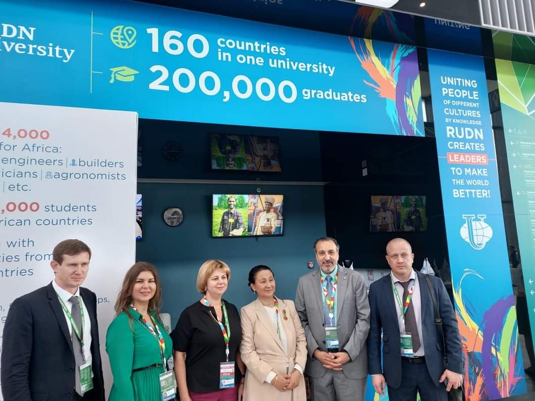 في اطار فعاليات المنتدى الروسي الافريقي في دورته الثانية بمدينة بيتربورج شاركت الجامعة الروسية للصداقة بين الشعوب المسمي باتريس لومومبا بجناح في معرض التعليم بحضور لاريسا يفريموفا نائب رئيس الجامعة للعلاقات الدولية ، و ناتاليا تروخانوفسكايا عميد معهد بوشكين للغة الروسية ونائب رئيس جامعة بيلجورود، واناستاسيا جوروفا ، داريا فاسينا.