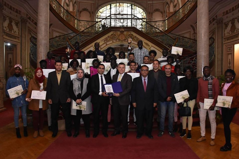 كرم أ.د. محمود المتيني رئيس جامعة عين شمس و أ.د. عبد الفتاح سعود نائب رئيس الجامعة لشئون التعليم و الطلاب وفد جامعة عين شمس المشارك في الملتقى الرياضي الأول للطلاب الوافدين ، و الذي استضافته جامعة قناة السويس في الفترة من ١ الي ٤ فبراير الجاري، تحت رعاية الدكتور خالد عبدالغفار وزير التعليم العالي والبحث العلمي بالتعاون مع الإدارة المركزية لشئون الطلاب الوافدين بالوزارة والاتحاد الرياضي المصري للجامعات.