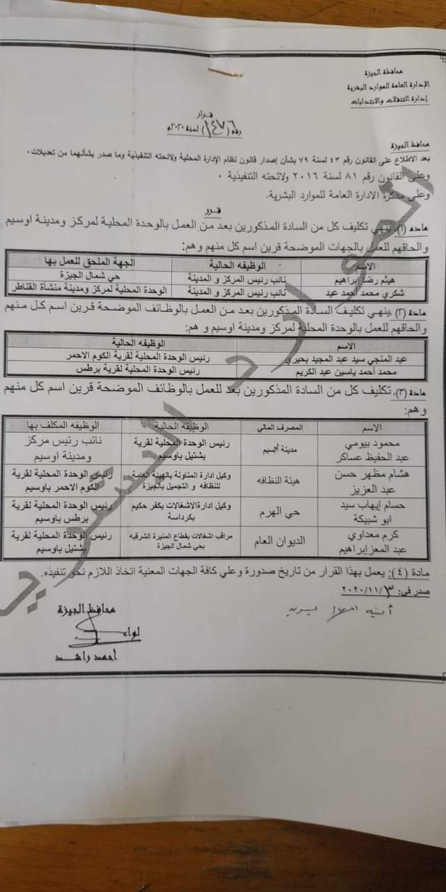 بعد الاطلاع على القانون رقم 43 لسنة 79 بشأن قانون نظام الادارة المحلية ولائحته التنفيذية وما صدر بشأنها من تعديلات وعلى القانون رقم 81 لسنة 2016 ولائحته التنفيذية وبناءا على مذكرة الادارة العامة للموارد البشرية