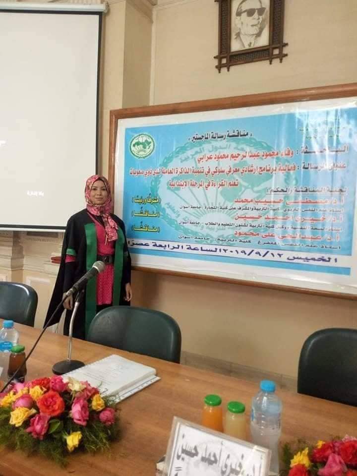 تكونت لجنة المناقشة من : أ. د مصطفى حسيب محمد أستاذ علم النفس التربوى والمشرف على كلية التجارة بجامعة أسوان