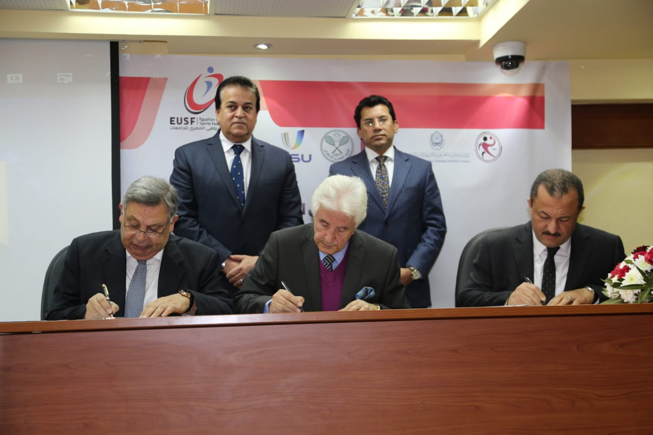 كما شهد وزيرا التعليم العالى والشباب والرياضة مراسم توقيع بروتوكول تعاون بين الاتحاد الرياضي المصري للجامعات، والاتحاد المصري لكرة اليد، والأكاديمية العربية للعلوم والتكنولوجيا؛ بشأن تنظيم مصر بطولة العالم للجامعات لكرة اليد 2024، والتي ستستضيف منافساتها الصالة المغطاة الجديدة بمدينة 6 أكتوبر، على أن تقام المباراة النهائية بالصالة المغطاة بالعاصمة الإدارية الجديدة، أو الصالة المغطاة باستاد القاهرة.