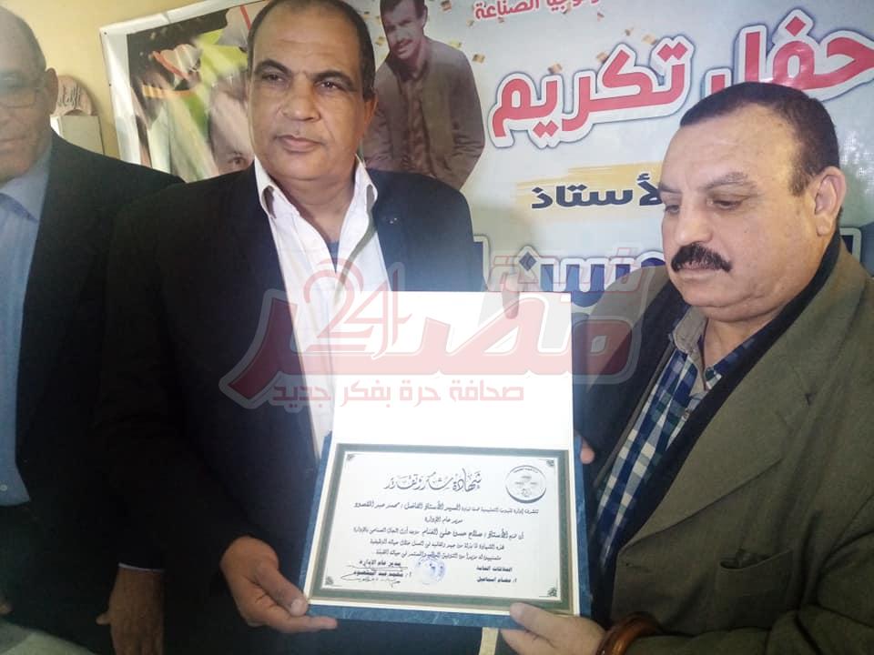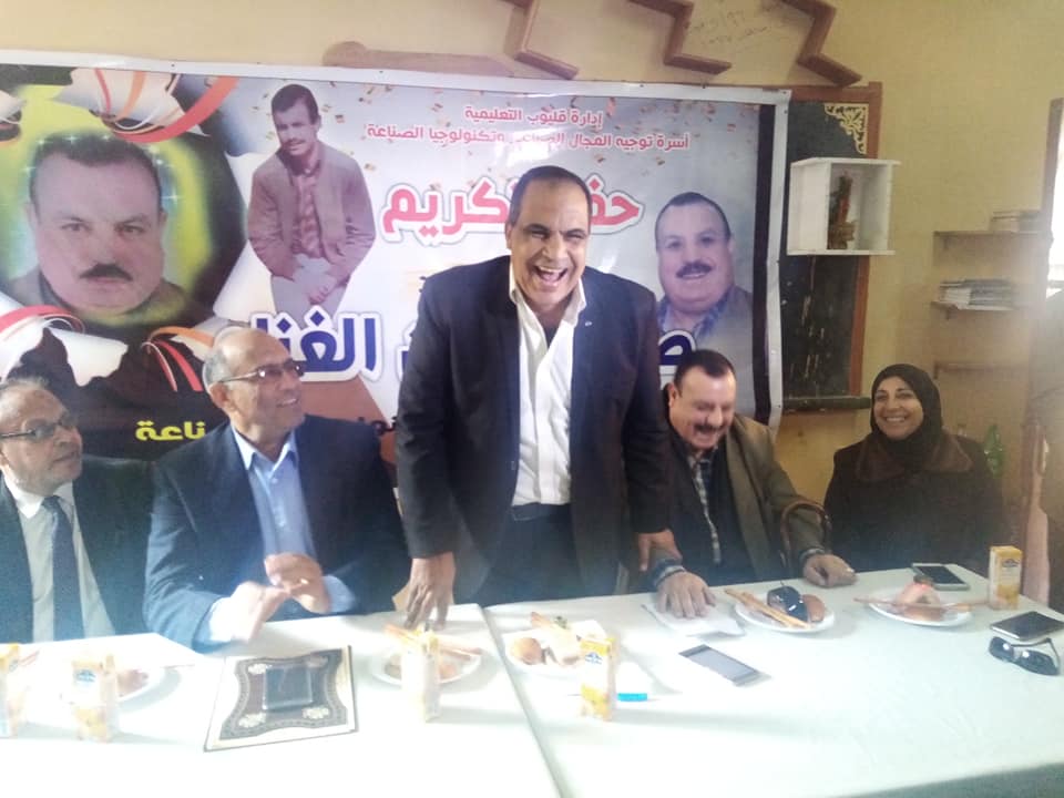 وفى كلمته التى امتزجت بدموع الفرحة والسعادة من حب زملائه وأبنائه خلال الحفل وجهه الاستاذ صلاح الغنام موجه أول المجال الصناعي التحية لزملائه ولجميع الحضور على كلمات الثناء والشكر وحرصهم على مشاركته حفل تكريمها، كما وجهه التحية لأبناء قليوب وبعد ذلك تم أخذ الصور التذكاريه والهدايا