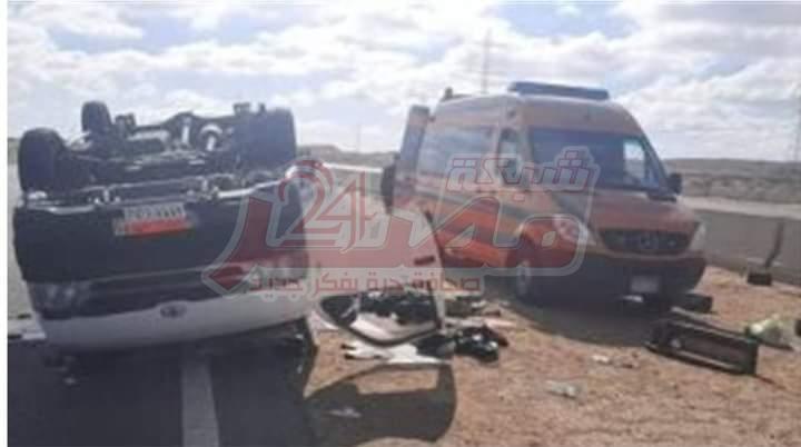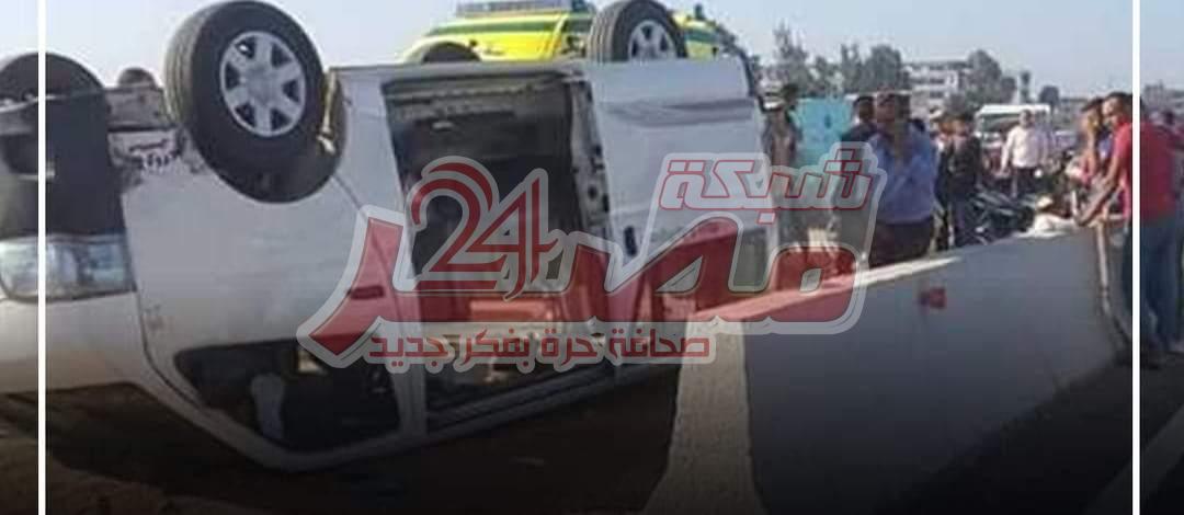 إصابة 10 أشخاص في حادث انقلاب ميكروباص بطريق...