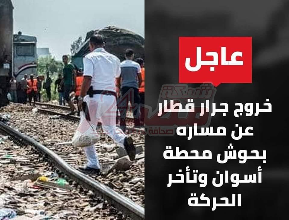 خروج جرار قطار عن مساره بحوش محطة أسوان