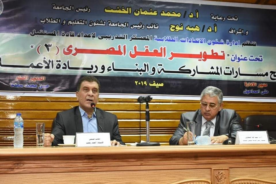 شهدت، قاعة المؤتمرات بالمدينة الجامعية للطلبة، اليوم الإثنين 8 يوليو الجاري، لقاءًا مفتوحًا مع الكاتب الصحفي أحمد رفعت، ضمن فعاليات معسكر قادة المستقبل لطلابها الذي تنظمه الجامعة في نسخته الثالثة، تحت عنوان " تطوير العقل المصري.. فتح مسارات المشاركة والبناء وريادة الأعمال"، وذلك برعاية الدكتور محمد عثمان الخشت رئيس الجامعة
