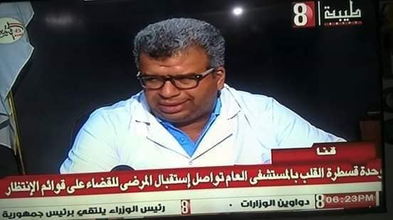 صرح الدكتور محمد الديب مدير مستشفى قنا العام في لقاء اجرتة معه قناة. طيبة منذ أيام أن قوائم أنتظار مرضى قسطرة القلب قد أنتهت تمام بجميع مراكز محافظة قنا وأدلى سيادته أن قسم قسطرة القلب بمستشفى قنا العام يقوم با أستقبال وعمل قسطرة كل أسبوع مايقرب من 25 الى 30 حالة يومى الخميس والجمعه من كل أسبوع وصرح الدكتور محمد عبد الماجد الاحمر أخصائى أمراض الباطنه والقلب الطبيب المشارك لعمل قسطرة القلب مع أستشارى أمراض القلب أن محافظة قنا قد أنتهت تمام من قوائم أنتظار أمراض القلب الذين ينتظرون عمل قسطرة لهم بفضل الله وبفضل قيادات الصحة بقنا ونحن نبذل قصارى جهدنا من أجل خدمة وراحت أبناء قنا وكما ألتقت القناة با أحد المرضى الذى صادفت أثناء تصوير الحلقة بالمستشفى والذى تم عمل قسطرة له أنه يشكر جميع القيادات الطبية بمحافظة قنا على أهتمامهم بمرضى القلب والذى كنا نتكبد معناه فى السفر إلى القاهرة أو أسيوط لعمل القسطرة وقد منا الله علينا بعمل هذا القسم الناجح بمستشفى قنا العام بفضل جهود أبناء قنا المخلصين الاستاذ الدكتور أيمن خضارى وكيل وزارة الصحة بقنا والدكتور محمد الديب النشيط المتألق الذى وصل بمستشفى قنا العام الى المستشفيات الخاصة بأسيوط والقاهرة الذى يبذل قصارى جهده وأضافة أقسام جديدة بالمستشفى فى أشد أحتياج المواطن القناوي والمحافظة لها خالص التحية والاحترام والتقدير للجنود الاوفياء الذين يعملون فى صمت من أجل راحة المرضى من أبناء محافظة قنا ---- النائب أحمد منصور الحبوبى رئيس لجنة العلاقات العامة با أئتلاف حب الوطن بمحافظة قنا