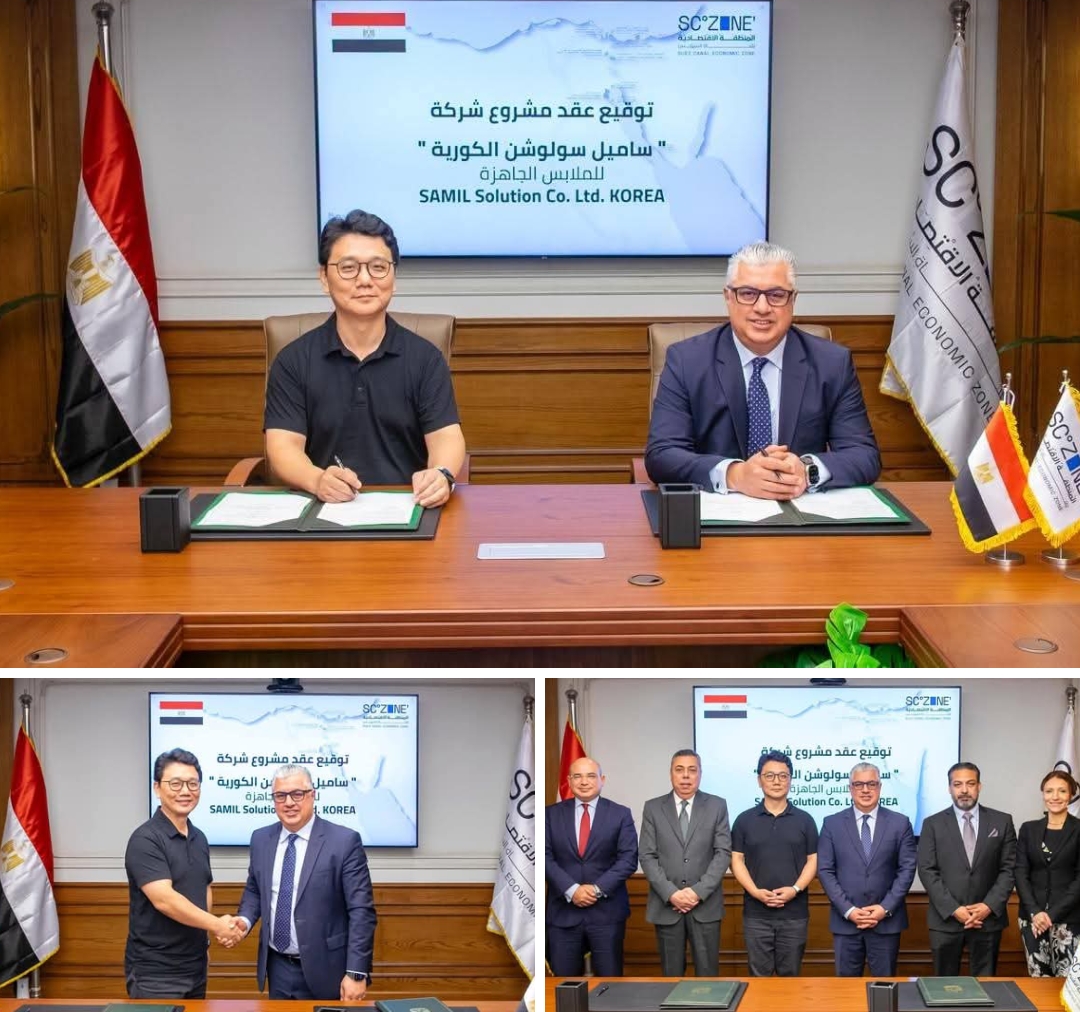 وقّع وليد جمال الدين، رئيس الهيئة العامة للمنطقة الاقتصادية لقناة السويس، بمقر الهيئة بالعاصمة الإدارية، عقد مشروع شركة "ساميل سولوشن- Samil Solution Co., Ltd" الكورية، المتخصصة في صناعة الملابس الجاهزة، وذلك لإقامة مشروع جديد بمنطقة القنطرة غرب الصناعية التابعة للهيئة، على مساحة 21 ألف متر مربع، بإجمالي استثمارات قدرها 4.49 مليون دولار أمريكي (تعادل نحو 212 مليون جنيه مصري)، ويستهدف المشروع إنتاج الملابس الجاهزة من التريكو والمنسوجات (Knit & Woven Garments) بطاقة إنتاجية سنوية تبلغ 8.8 مليون قطعة، مع تصدير 100% من الإنتاج إلى الأسواق الخارجية، ومن المقرر أن يوفّر المشروع نحو 1000 فرصة عمل مباشرة، وقد وقّع عن الشركة السيد/ كيم غن وو (Kim Gun Woo)، رئيس مجلس إدارة الشركة.