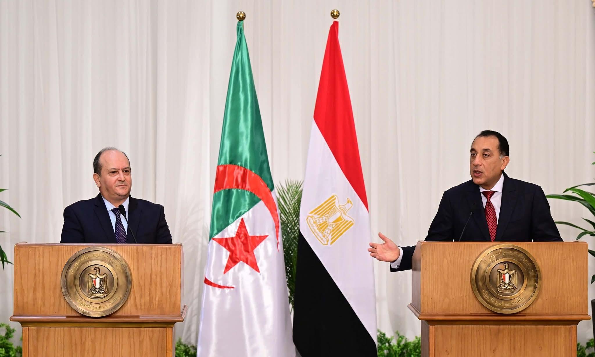 وأعرب رئيس الوزراء عن أمله في أن يتم خلال فعاليات منتدى الأعمال المصري الجزائري الذي سيعقد اليوم عقب اجتماع اللجنة العليا المشتركة تشجيع مؤسسات القطاع الخاص في البلدين الشقيقين لتبني تنفيذ المشروعات المشتركة التي تعتمد على المقومات الاقتصادية التي تتميز بها البلدان، وكذا القدرات والخبرات الفنية المكتسبة بهما، وذلك لتحظى مصر والجزائر بتنفيذ وإنشاء مشروعات كبيرة، تسهم في تلبية مختلف الاحتياجات المحلية للبلدين، وتكون أيضاً فرصة لتصديرها للعديد من الأسواق العالمية المشتركة، وذلك سواء على مستوى الدول العربية والافريقية ومنطقة البحر المتوسط، مؤكداً أن لدى البلدين العديد من المقومات والفرص الواعدة في مجالات الزراعة والأمن الغذائي، والنقل واللوجستيات، والاتصالات وتكنولوجيا المعلومات، والطاقة الجديدة والمتجددة، وإنتاج الهيدروجين الأخضر، وتوطين الصناعات، فضلاً عن قطاعات الموانئ والإسكان والتطوير العمراني والسياحة، باعتبار هذه القطاعات تمثل اهتماما وأولوية مشتركة للجانبين المصري والجزائري، مؤكداً في هذا الصدد ضرورة الاهتمام بمجالات الذكاء الاصطناعي والرقمنة.