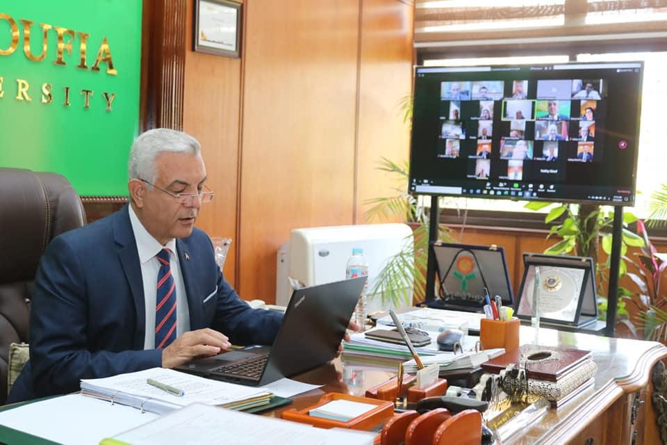 عقد اليوم الدكتور عادل مبارك رئيس جامعة المنوفية جلسة مجلس الجامعة لشهر مارس ٢٠٢٠ "أون لاين" عبر منصات الإجتماعات الإلكترونية نظرا للظروف الراهنة التى تستدعى عدم وجود تجمعات للحد من انتشار عدوى فيروس كورونا المستجد.