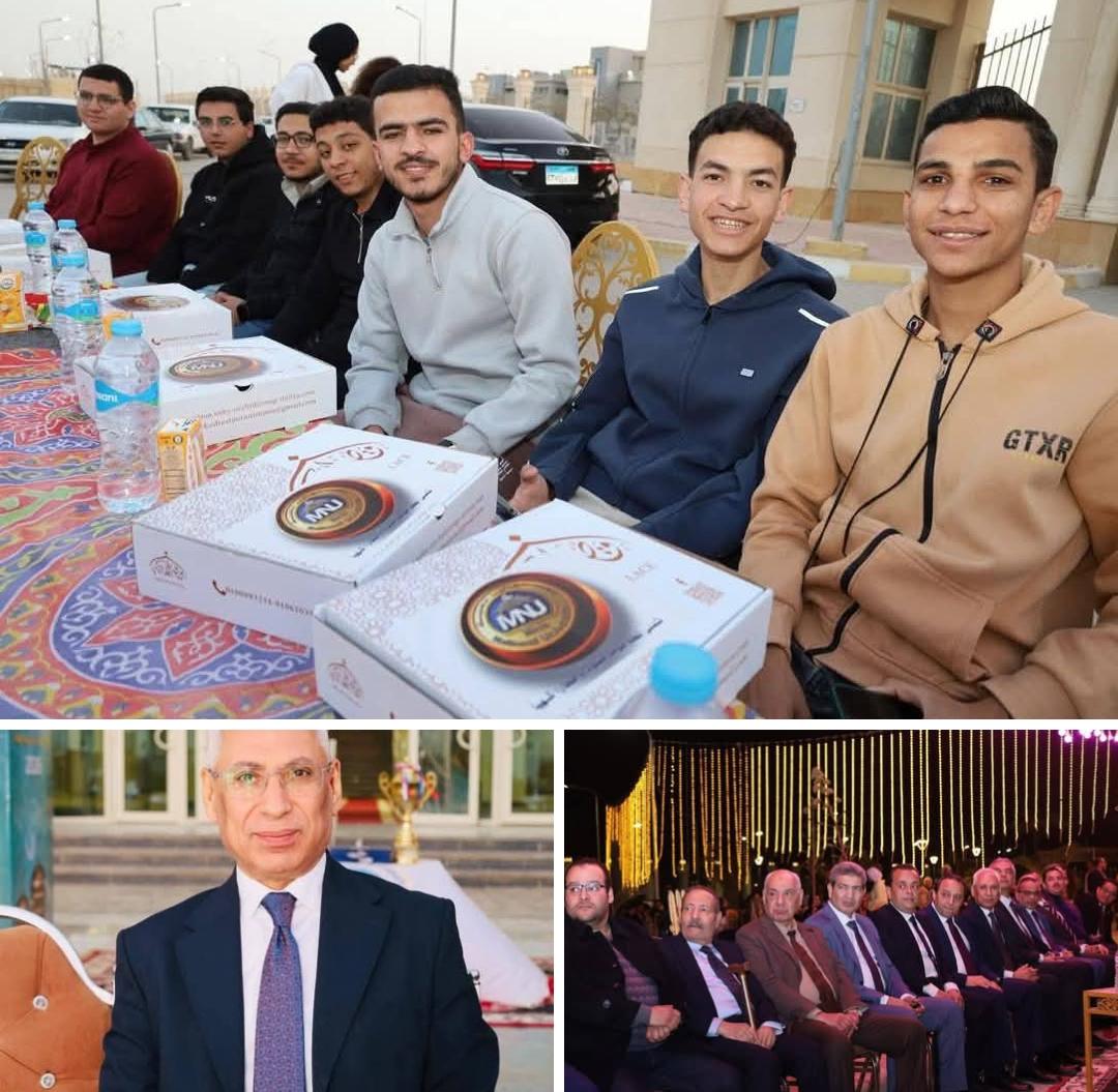 في إطار تعزيز التواصل المباشر بين إدارة الجامعة وطلابها، شارك الدكتور عصام فرحات رئيس جامعة المنيا، والقائم بأعمال رئيس جامعة المنيا الأهلية، أعضاء مجلس أمناء الجامعة: الدكتور محمد جلال، والدكتور أحمد شوقي ، والدكتور احمد السيد، طلاب الجامعة الأهلية حفل الإفطار الرمضاني السنوي الذي نظمته الإدارة العامة لرعاية الطلاب، بحضور الدكتور أبو هشيمة مصطفى نائب رئيس الجامعة للشئون الأكاديمية، وعمداء الكليات ومديري ومرشدي البرامج، وبمشاركة الطلاب أوائل الفرق الدراسية من مختلف البرامج والمتميزين في الأنشطة الطلابية.