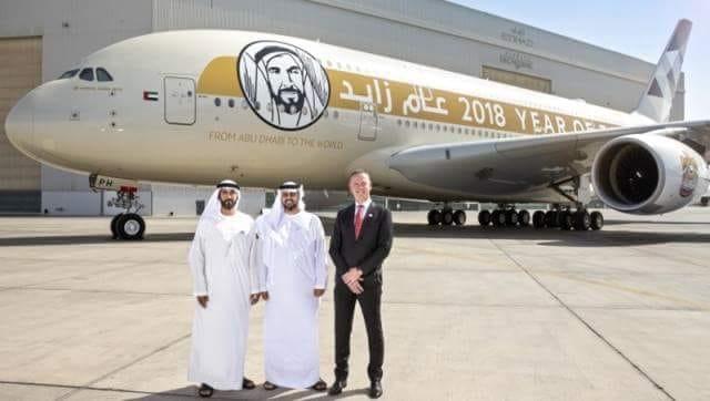 وتمثل الطائرة طراز A380 التي تحمل شعار «عام زايد» إحدى المبادرات الواسعة لمجموعة الاتحاد للطيران على مدار عام 2018 والتي تستند إلى القيم الرئيسية الأربع لعام زايد المتمثلة في الحكمة والاحترام والاستدامة وبناء الإنسان. ومن المقرر أن تقوم طائرة الشحن التي تحمل شعار عام زايد المخصصة لنقل المساعدات الإنسانية، والتي تمثل المبادرة الأولى لمجموعة الاتحاد للطيران ضمن مبادراتها الأربع لعام زايد، برحلتها الأولى لصالح المؤسسات الخيرية في مايو الجاري.