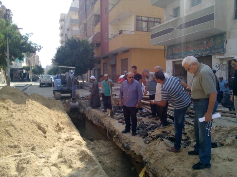 وتابع استمرار أعمال الإصلاح لكسر خط الصرف الصحى بمنطقة المحطة الجديدة بحى اول بالاسماعيلية أمام وابور النور بقطر ٨ بوصة واستبداله بخط ١٠ بوصة وبطول ٢٤ متر وذلك لاستيعاب تصرفات الصرف الصحى فى المنطقة بالكامل ،