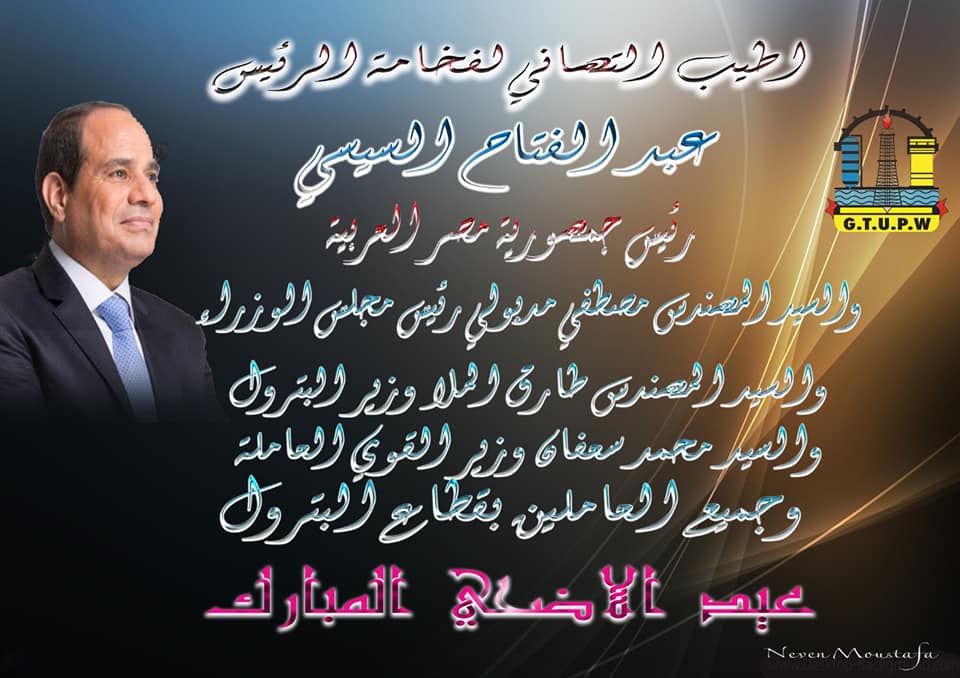 مؤكدين علي دعمنا الكامل لما تقوم به الدوله من عمل لم تشهده مصر من قبل نحن قطاع البترول العريق الذي يعمل بقوة ليظل من اهم قطاعات الدوله لدعم الاقتصاد بتوجيهات المهندس طارق الملا وزير البترول.. حفظ الله قطاع البترول وحفظ مصرنا الغاليه