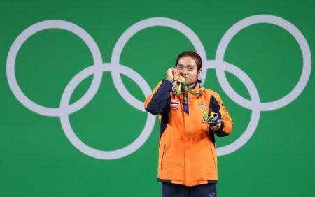 نالت تايلند اول ميدالية ذهبية في رفع الأثقال في اولمبياد ريو دي جانيرو في وزن 48 كيلوجراما للسيدات امس السبت.