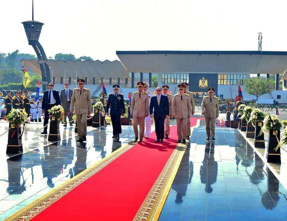 قام السيد الرئيس عبد الفتاح السيسي صباح اليوم بزيارة قبر الجندي المجهول بمدينة نصر، حيث وضع سيادته إكليلا من الزهور وقرأ الفاتحة ترحماً على شهداء مصر الأبرار الذين ضحوا بأرواحهم فداءً للوطن، وذلك في إطار الاحتفالات بالذكري الخامسة والأربعين لحرب أكتوبر المجيدة.