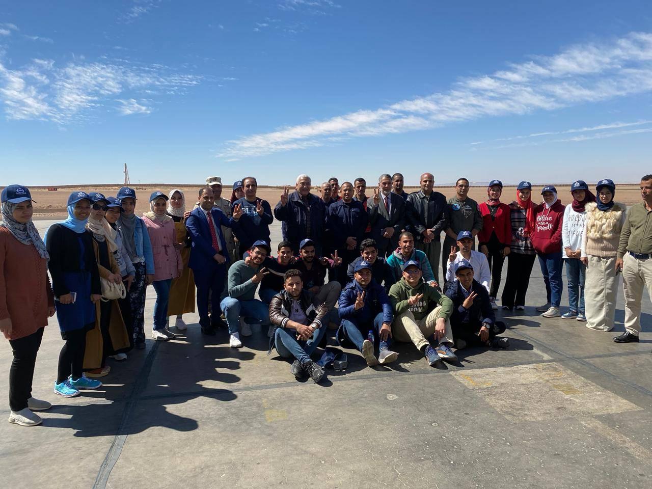 اختتمت زيارة الطلاب والطالبات المتفوقين والمتفوقات بجامعة مدينة السادات الي الأقصر وأسوان بزيارة القاعدة الجوية بأسوان والتي تقوم بمهام متعددة لحماية الحدود الجنوبية لمصر حيث استقبل قائد القاعدة بالإنابة والضباط الطيارين ا د احمد محمد بيومي رئيس الجامعة و ا د عبد الحميد شاهين عميد كلية التجارة والوفد حيث قدموا شرحًا للمهام القتالية والدفاعية التي يقومون بها وشاهد الطلاب الطائرات التي يقودها نسور مصر لحماية أمنها وسلامتها وقدم السيد رئيس الجامعة درع الجامعة تقديرا لنسور مصر