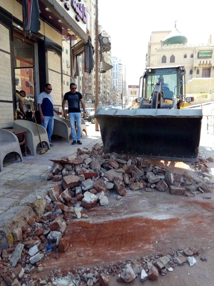 فور ورود بلاغ بسقوط أجزاء من بلكونة بالعقار الكائن 134 شارع خالد بن الوليد بسيدى بشر تحرك على الفور حمدى عبد العليم شامه رئيس حى المنتزه و وحدة الإزالة والتدخل السريع للمعاينة وتم اتخاذ الإجراءات اللازمة حفاظا على سلامة المواطنين من التعرض للمخاطر .