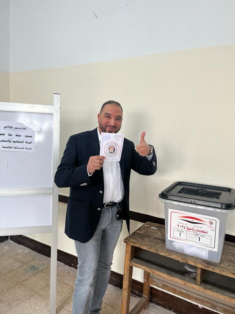 أشرف الشيمي اكد عقب الإدلاء بصوته ان المشاركة في الانتخابات الرئاسية واجب وطني مكفول لكل مواطن مصري من أجل الحفاظ علي استقرار بلدنا.